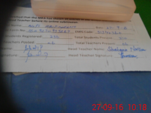 | Attendance Register | Head Teacher | MEA with School | Visit Proof |