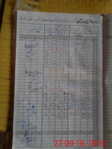| CNIC | Full Name | Designation | R/C | Absence During Last Calender Month |