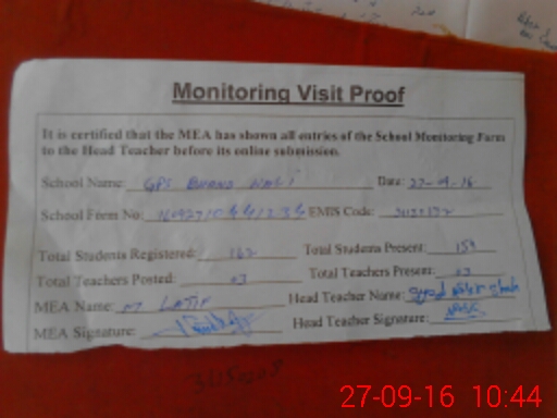 | Attendance Register | Head Teacher | MEA with School | Visit Proof |