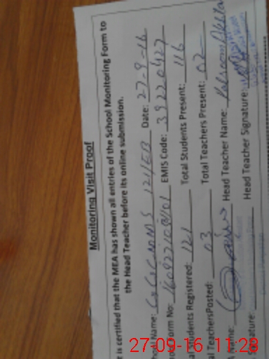 | Attendance Register | Head Teacher | MEA with School | Visit Proof |