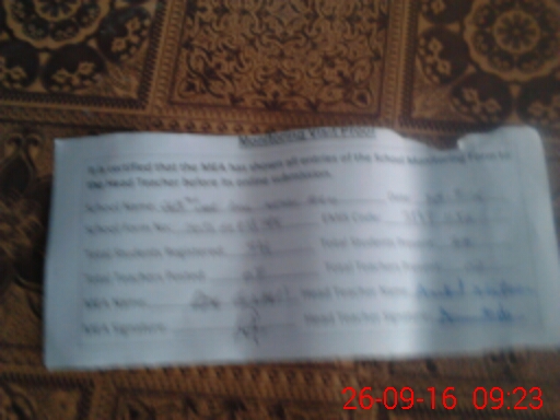 | Name: IF**** SA**** Designation: (School Headmaster's/Headmistress's) Pst Sci-math Phone/Cell Number: 03**** |