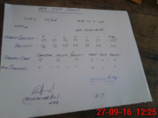| Attendance Register | Head Teacher | MEA with School | Visit Proof |