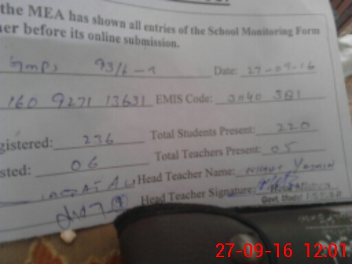 | Attendance Register | Head Teacher | MEA with School | Visit Proof |