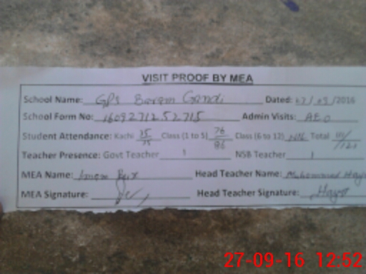 | EMIS Code: 32430201 | Name of School: GPS BARAM GANDI | |||