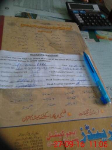 | Name: ZA**** MU**** Designation: (School Headmaster's/Headmistress's) PTC/JV Phone/Cell Number: 03**** |