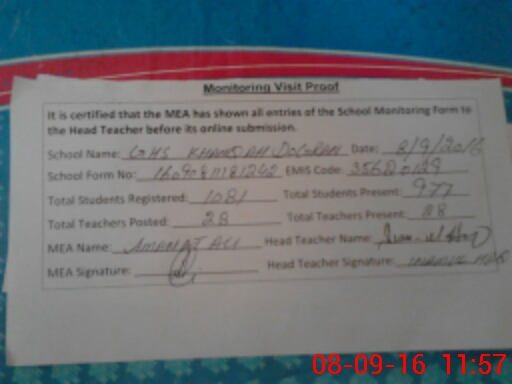 | Certified that this School was Inspected by the Undersigned MEA/DMO Today and the Information Stated Above is as Per Record. | |||||