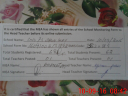 | Certified that this School was Inspected by the Undersigned MEA/DMO Today and the Information Stated Above is as Per Record. | |||||