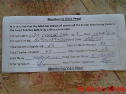 | EMIS Code: 35620421 | Name of School: GPS CHADER CHAK 3 RB | |||