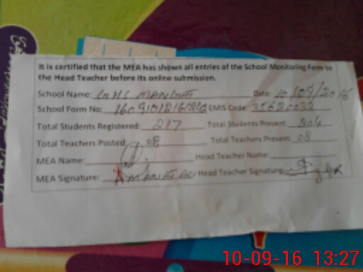 | Certified that this School was Inspected by the Undersigned MEA/DMO Today and the Information Stated Above is as Per Record. | |||||