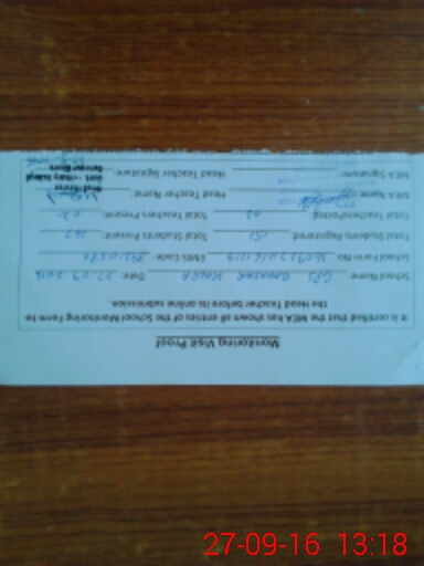 | Name: MBI**** Designation: (School Headmaster's/Headmistress's) PST Phone/Cell Number: 03**** |