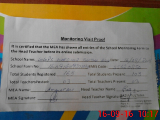 | Certified that this School was Inspected by the Undersigned MEA/DMO Today and the Information Stated Above is as Per Record. | |||||