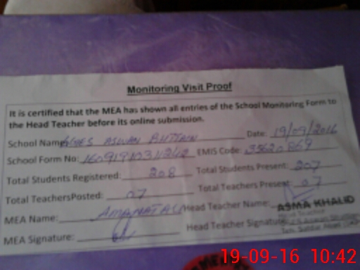 | Certified that this School was Inspected by the Undersigned MEA/DMO Today and the Information Stated Above is as Per Record. | |||||
