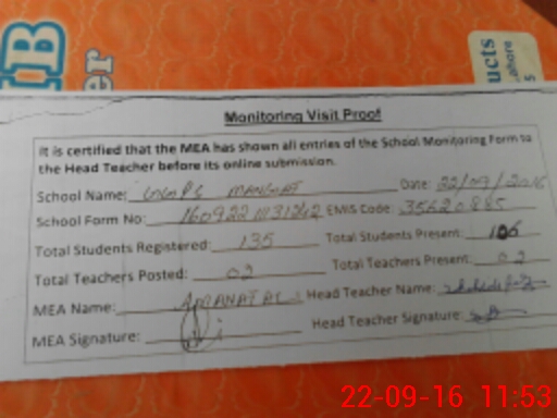 | Certified that this School was Inspected by the Undersigned MEA/DMO Today and the Information Stated Above is as Per Record. | |||||
