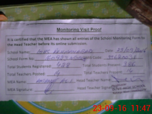 | Certified that this School was Inspected by the Undersigned MEA/DMO Today and the Information Stated Above is as Per Record. | |||||
