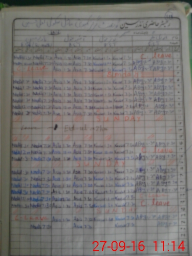 | CNIC | Full Name | Designation | R/C | Absence During Last Calender Month |