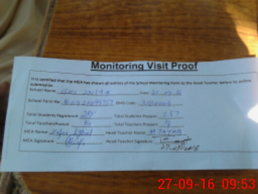 | Attendance Register | Head Teacher | MEA with School | Visit Proof |