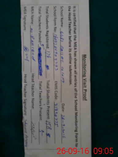 | Certified that this School was Inspected by the Undersigned MEA/DMO Today and the Information Stated Above is as Per Record. | |||||