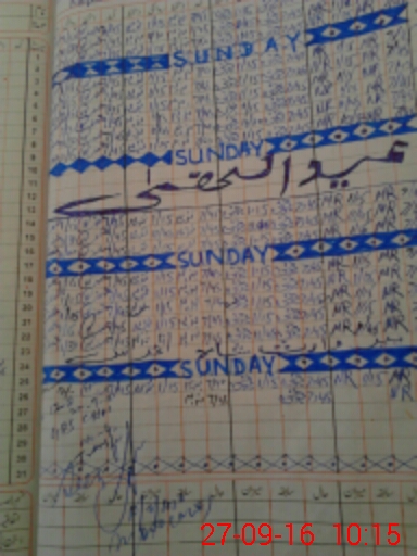 | CNIC | Full Name | Designation | R/C | Absence During Last Calender Month |