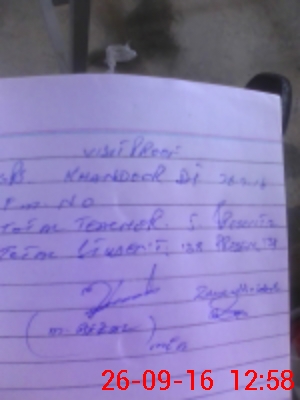 | School Visited by School Health & Nutrition Supervisor (No. of Visits) | 1 | Name1: | Usman Ghani | Name2: | O |