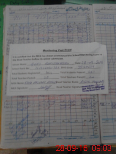 | Attendance Register | Head Teacher | MEA with School | Visit Proof |