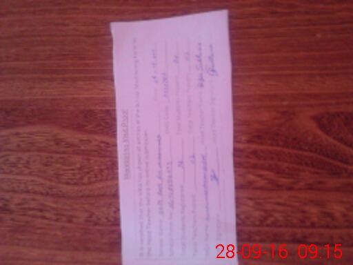 | Monitoring Date: 28-09-2016 | Start Time: 28-09-2016 09:02 AM | End Time: 28-09-2016 09:15 AM | Name of MEA: Mu**** Ak**** | |