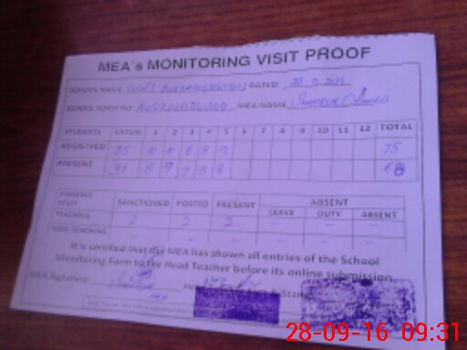 | Attendance Register | Head Teacher | MEA with School | Visit Proof |