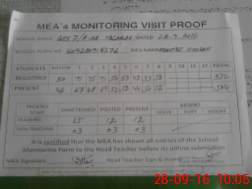 | Attendance Register | Head Teacher | MEA with School | Visit Proof |