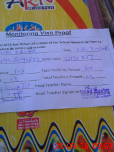 | Attendance Register | Head Teacher | MEA with School | Visit Proof |
