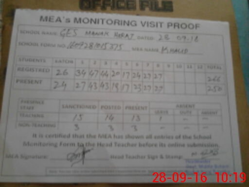 | EMIS Code: 36430071 | Name of School: GHS MANAK HERAJ, TULAMBA | |||