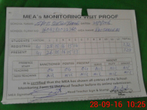 | Attendance Register | Head Teacher | MEA with School | Visit Proof |