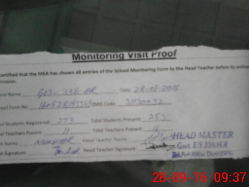 | Certified that this School was Inspected by the Undersigned MEA/DMO Today and the Information Stated Above is as Per Record. | |||||