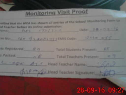 | Attendance Register | Head Teacher | MEA with School | Visit Proof |