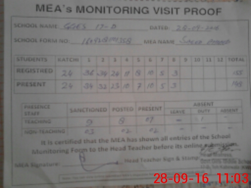 | Attendance Register | Head Teacher | MEA with School | Visit Proof |