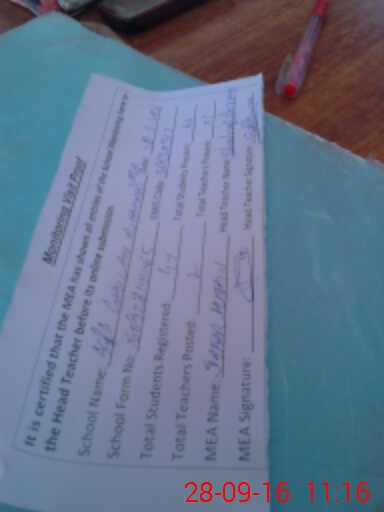 | Attendance Register | Head Teacher | MEA with School | Visit Proof |