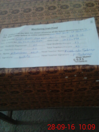 | Monitoring Date: 28-09-2016 | Start Time: 28-09-2016 09:58 AM | End Time: 28-09-2016 10:09 AM | Name of MEA: Kh**** Iq**** | |