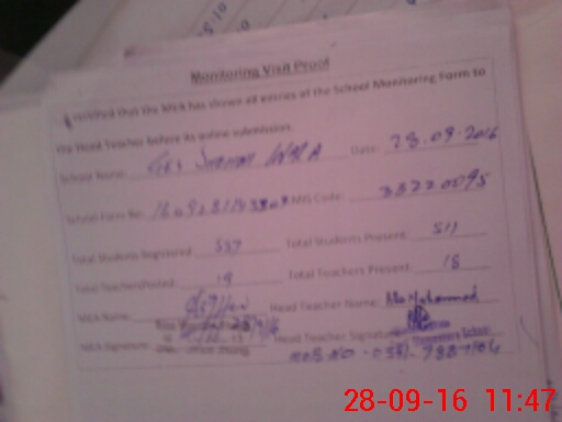 | Attendance Register | Head Teacher | MEA with School | Visit Proof |