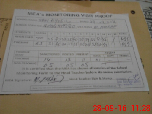 | Attendance Register | Head Teacher | MEA with School | Visit Proof |