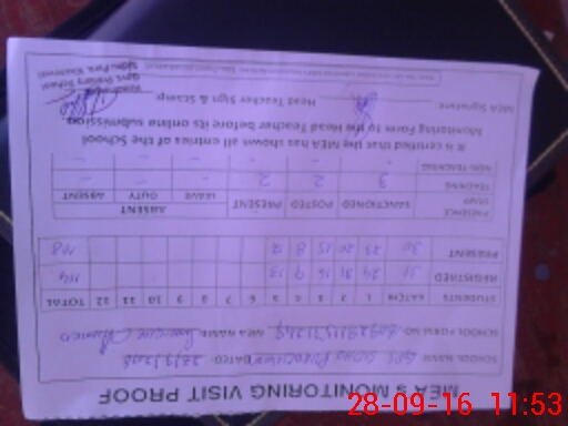 | Attendance Register | Head Teacher | MEA with School | Visit Proof |