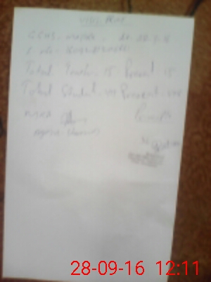 | Monitoring Date: 28-09-2016 | Start Time: 28-09-2016 08:30 AM | End Time: 28-09-2016 09:11 AM | Name of MEA: Ab**** Ha**** | |