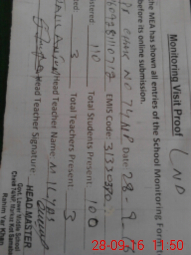 | Name: M.IL**** MU**** Designation: (School Headmaster's/Headmistress's) EST Phone/Cell Number: 03**** |