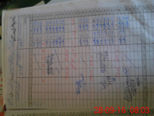 | CNIC | Full Name | Designation | R/C | Absence During Last Calender Month |