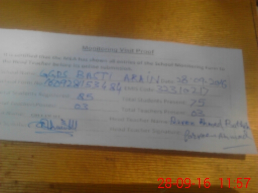 | EMIS Code: 32310217 | Name of School: GGPS BASTI ARAIN | |||
