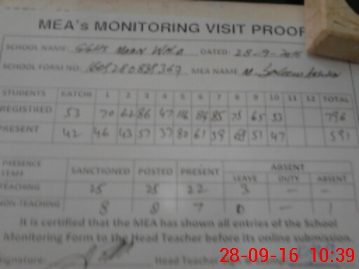 | Attendance Register | Head Teacher | MEA with School | Visit Proof |