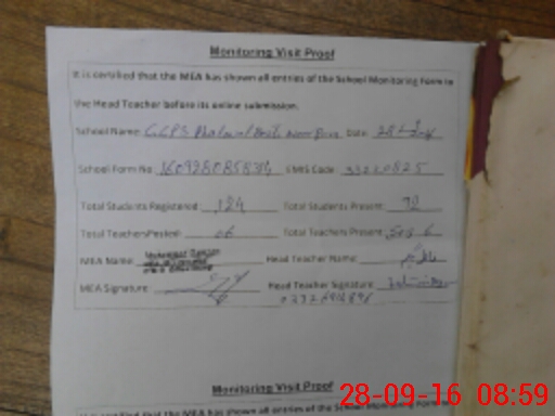 | Attendance Register | Head Teacher | MEA with School | Visit Proof |