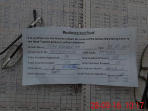 | Attendance Register | Head Teacher | MEA with School | Visit Proof |