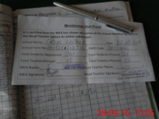 | Attendance Register | Head Teacher | MEA with School | Visit Proof |