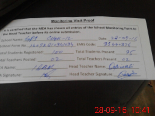| EMIS Code: 35440376 | Name of School: GPS CHAK NO.12 UCC | |||