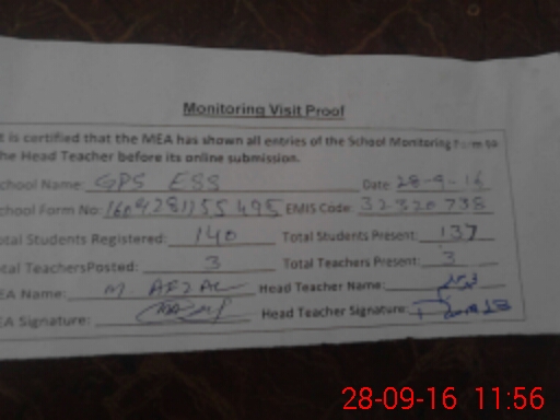 | EMIS Code: 32320738 | Name of School: GPS EESAY WALA | |||