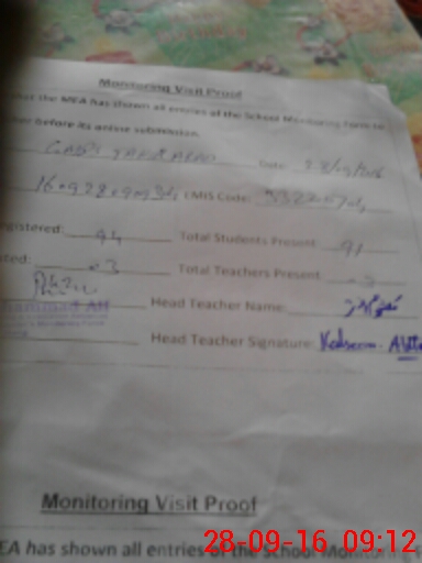 | Attendance Register | Head Teacher | MEA with School | Visit Proof |