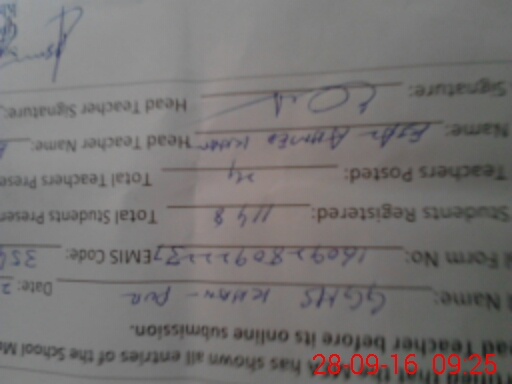 | Name: Nj**** Me**** Designation: (School Headmaster's/Headmistress's) Principal Phone/Cell Number: 03**** |